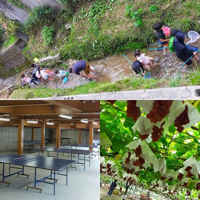 休日限定で小魚放流、9月下旬からは芋掘りなどのイベントも開催しています。